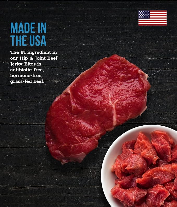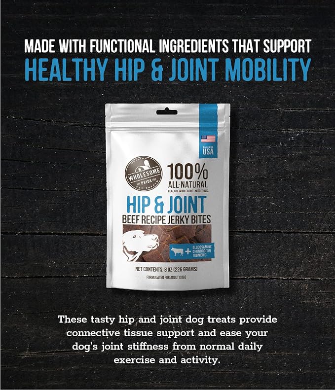 • USA BEEF #1 INGREDIENT: Like all Wholesome Pride dog treats, our Hip & Joint Support Jerky Bites are made in the USA with 100% all-natural ingredients.