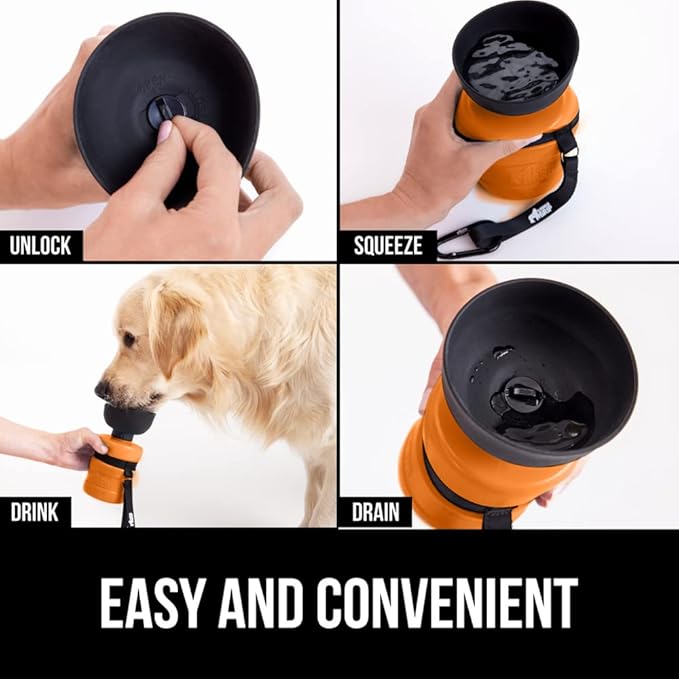 Gorilla Grip No Spill Portable Dog Water Bottle with Built in Bowl, Food Grade Silicone Leak Proof Pets Travel Drink Dispenser, Puppy Walk Training, Pet Hiking Essentials, Trip Accessories, Orange