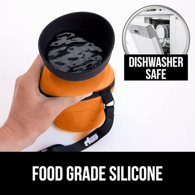 Gorilla Grip No Spill Portable Dog Water Bottle with Built in Bowl, Food Grade Silicone Leak Proof Pets Travel Drink Dispenser, Puppy Walk Training, Pet Hiking Essentials, Trip Accessories, Orange