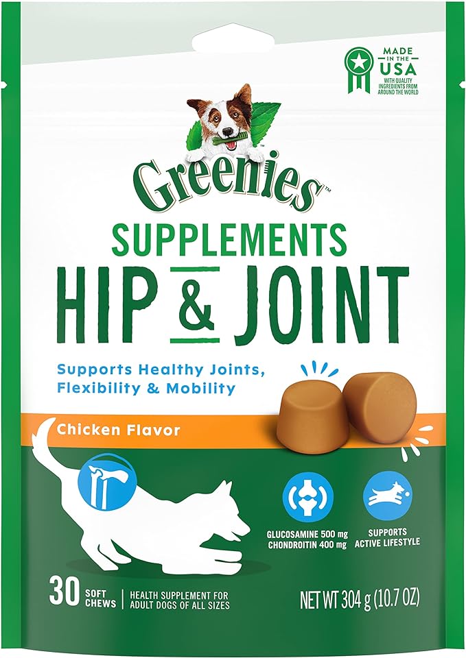GREENIES Supplements Hip & Joint Supplements for Dogs With Glucosamine and Chondroitin, 30 Count Chicken-Flavor Soft Chews Dog Joint Supplements