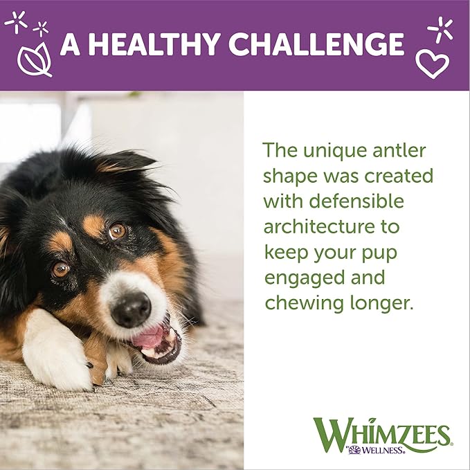 WHIMZEES by Wellness Occupy Antler Natural Dental Chews for Dogs, Long Lasting Treats, Grain-Free, Freshens Breath, Medium Breed, 12 count
