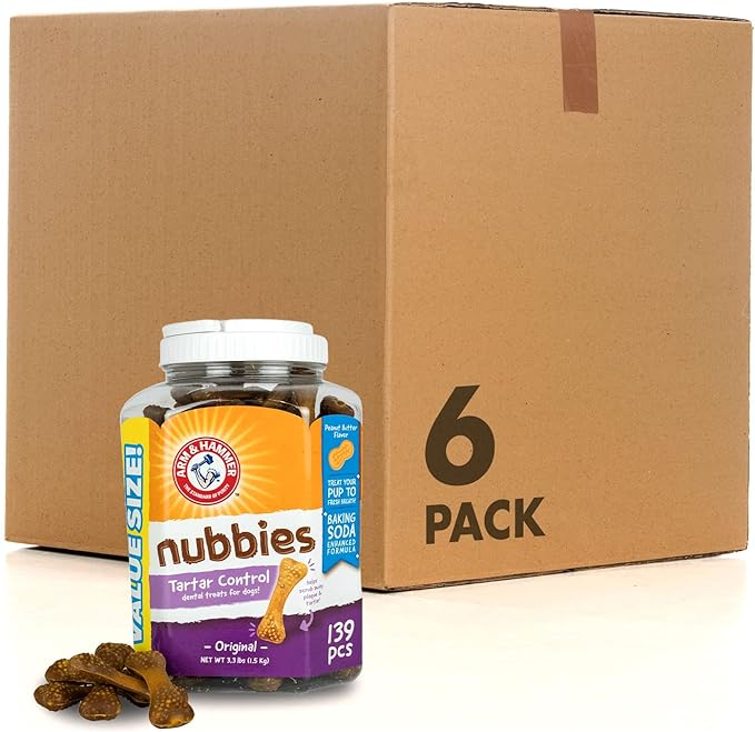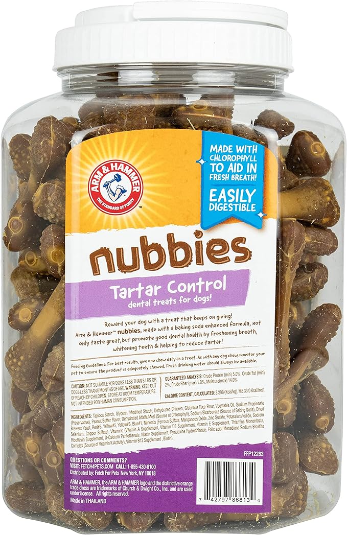 Arm & Hammer for Pets Nubbies Tartar Control Dental Treats for Dogs, Value Pack, 139 Count - 6 Pack | Dental Chews Fight Bad Dog Breath, Plaque & Tartar | Peanut Butter Flavor