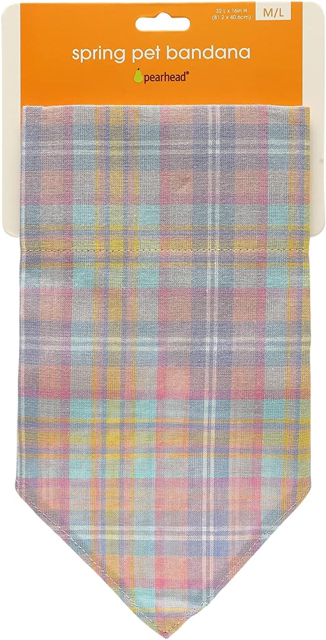 Pearhead Pet Pastel Plaid Bandana, Easter Pet Bandana, Spring Pet Gifts,Slide-On Dog Bandana, Pet Apparel, Pet Accessory, Pet Owner Gift Ideas, Medium/Large, M/L