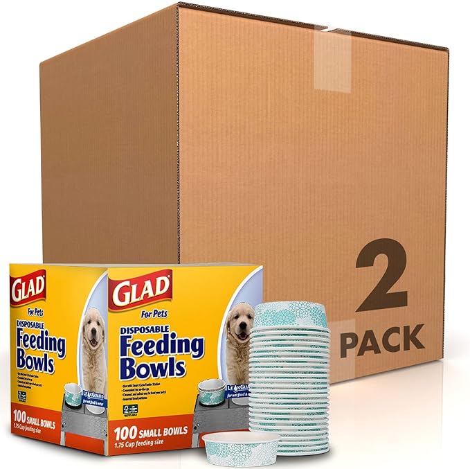 Glad for Pets Disposable Feeding Bowls | Small Disposable Dog Bowls in Assorted Designs| 1.75 Cup Feeding Size, 200 Count - Dog Bowls are Great for Dry and Wet Dog Food or Water