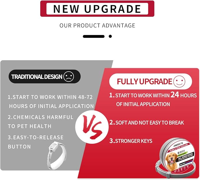 • 【Long-lasting】: Jmxu's flea and tick collar like no other, flea prevention collar prevents both flea and tick infestations via simple contact with your dog's skin and provides long-lasting protection for up to 8 months.