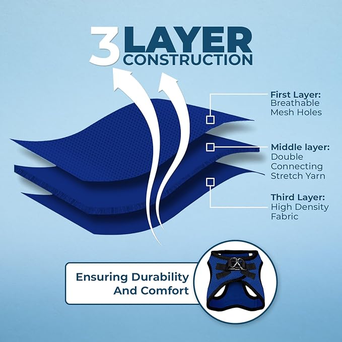 • ALL WEATHER MESH: Made with a soft, breathable air mesh, this lightweight pet harness is perfect for walks all year round.