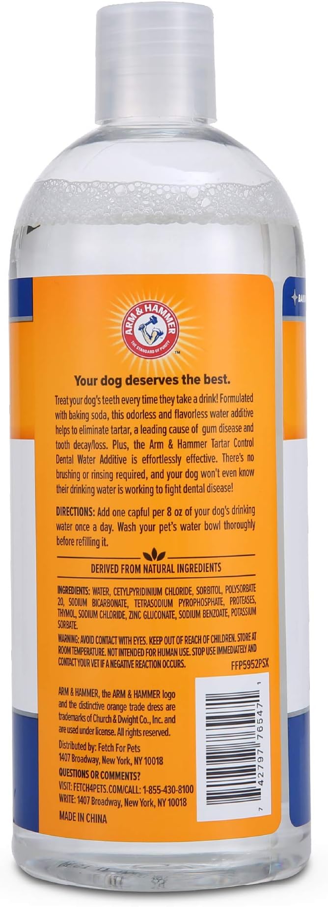 • HELPS FIGHT TARTAR ? Arm & Hammer Dental Water Additive for dogs helps fight tartar with a baking soda-enhanced formula