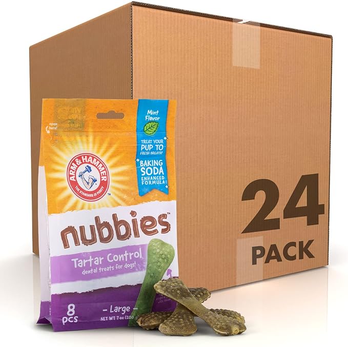 Arm & Hammer for Pets Nubbies Dental Treats for Dogs | Dental Chews Fight Bad Breath, Plaque & Tartar Without Brushing | Mint Flavor, 8 Count, 24 Pack, Size Large