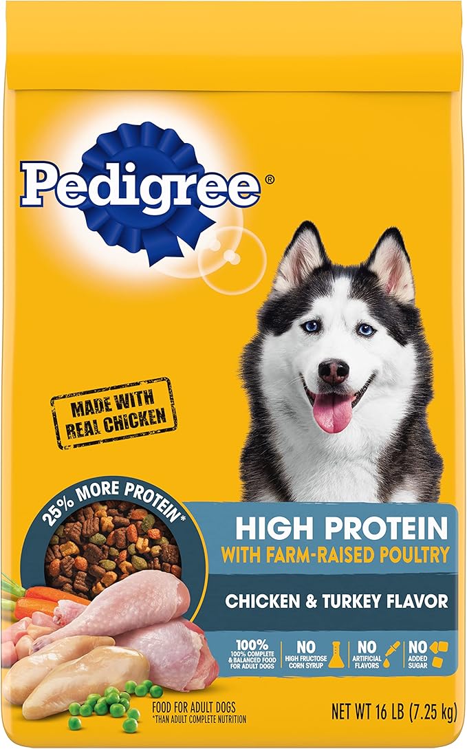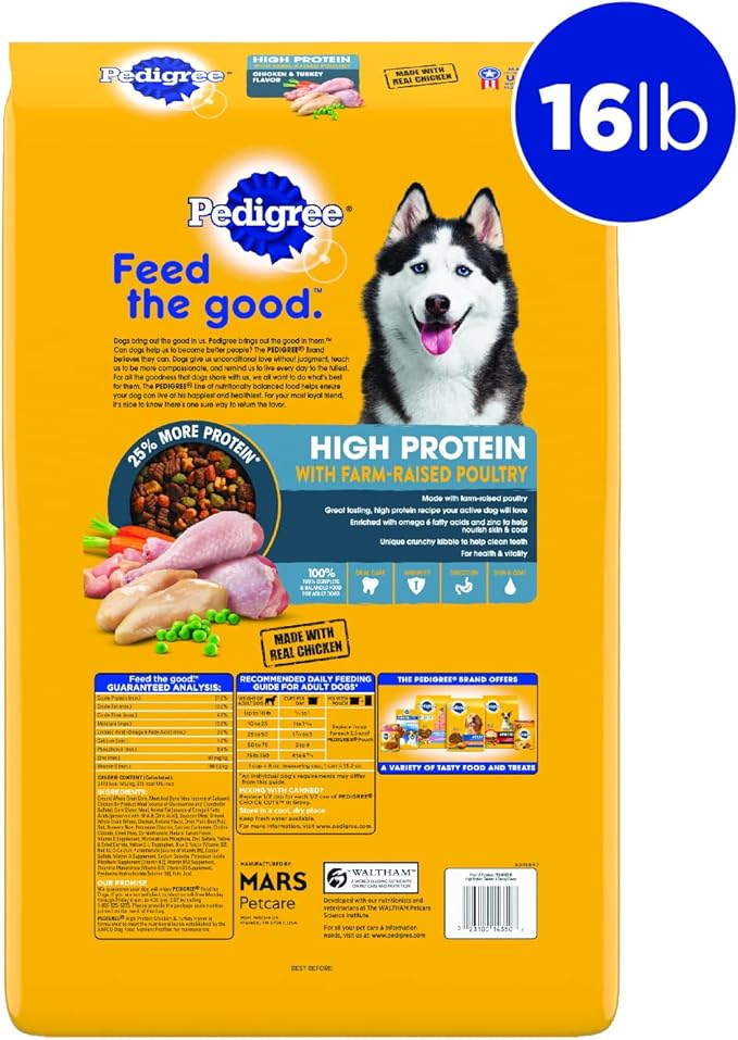 Pedigree High Protein Adult Dry Dog Food Chicken and Turkey Flavor Dog Kibble, 16 lb. Bag