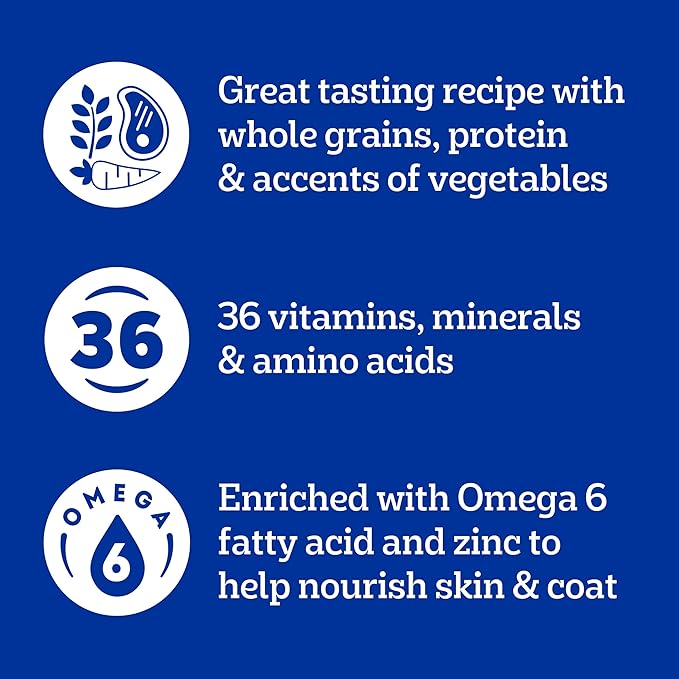 • Supports Healthy Skin and Coat: This dry dog food recipe is enriched with Omega 6 Fatty Acid and Zinc to help nourish a healthy skin and coat.