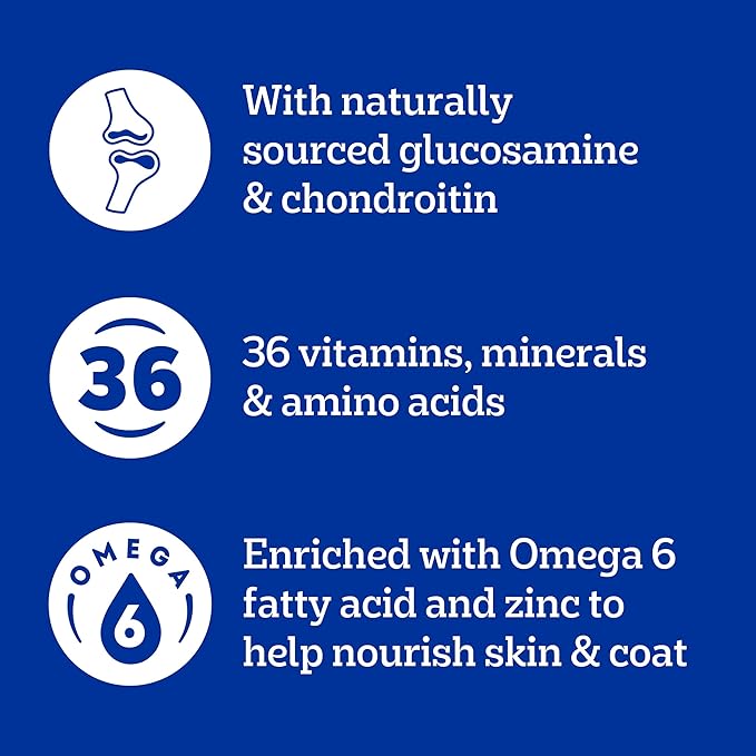 • Healthy Bones and Joints: Made with naturally sourced Glucosamine and Chondroitin to help support healthy bones and joints.