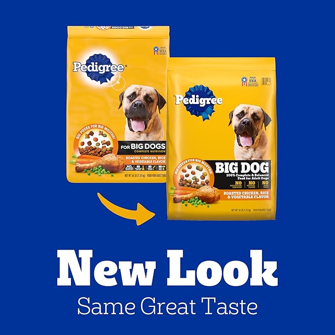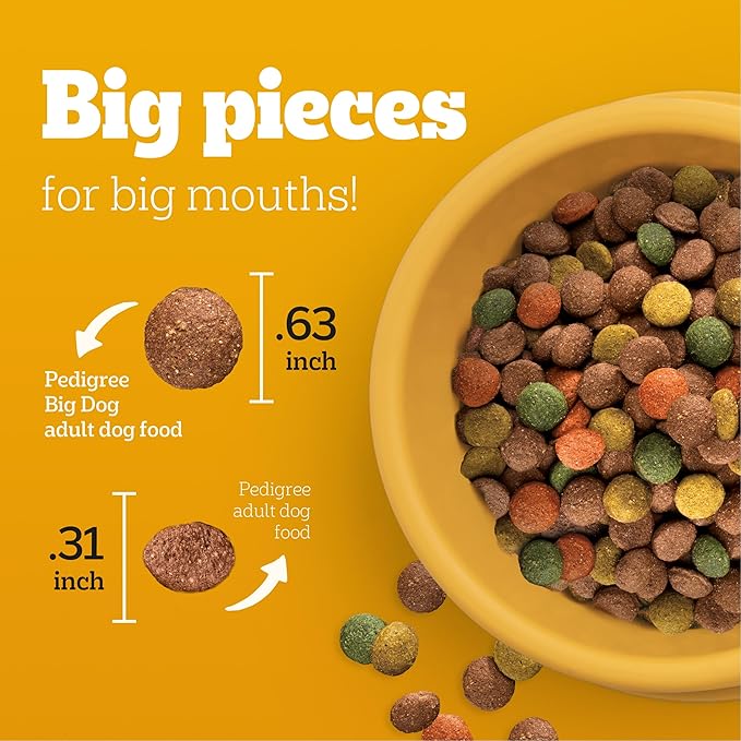 • Great Tasting: Pedigree Complete Nutrition Big Dog Dry Dog Food, Roasted Chicken, Rice & Vegetable Flavor is a great-tasting dry dog food recipe with whole grains, protein, and accents of vegetables.