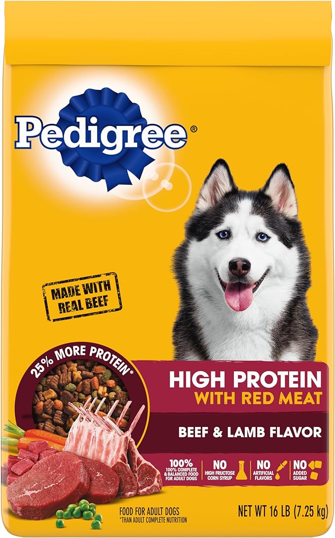 Pedigree High Protein Adult Dry Dog Food Beef and Lamb Flavor Dog Kibble, 16 lb. Bag