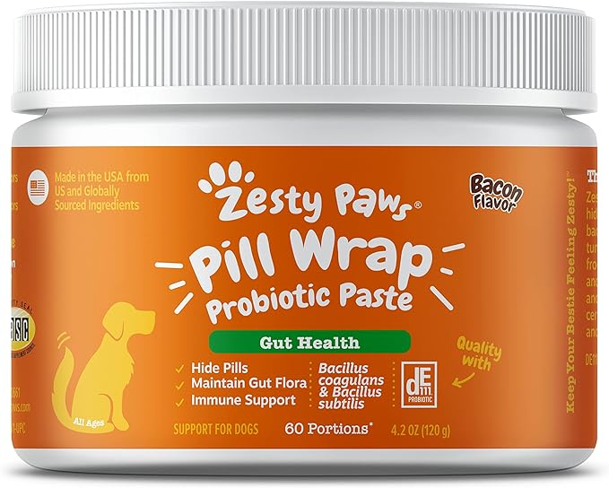• That's a "Wrap" on Boring Medications! - Zesty Paws Pill Wrap Probiotic Paste is a tasty way to hide and pocket any pills, tablets, and capsules your dog takes.