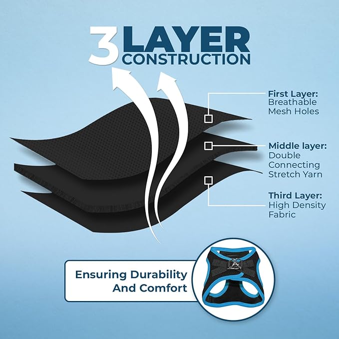 • ALL WEATHER MESH: Made with a soft, breathable air mesh, this lightweight pet harness is perfect for walks all year round.