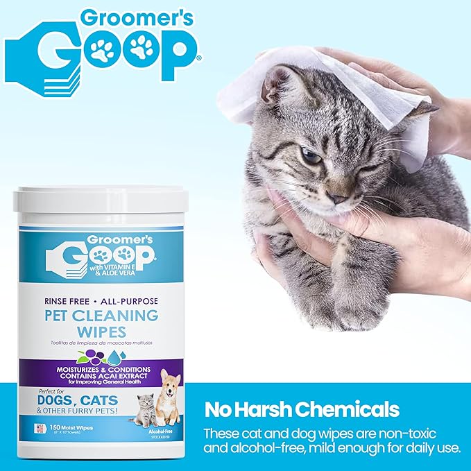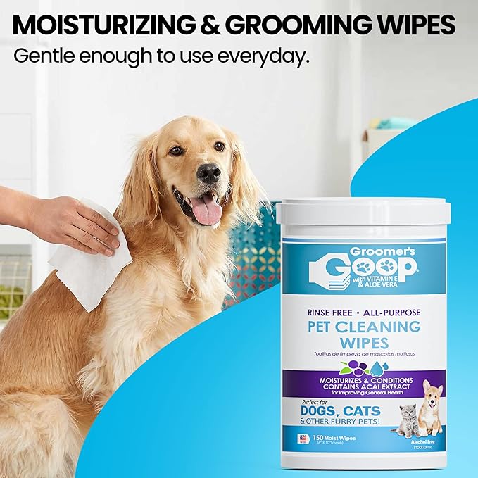 Groomerโ€™s Goop Rinse Free All-Purpose Pet Cleaning Wipes - 150 Count