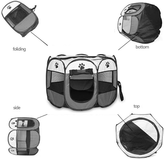 Pet Playpen, Foldable Dog Playpens, Portable Exercise Kennel Tent for Puppies/Dogs/Cats/Rabbits, Dog Play Tent with Removable Mesh Shade Cover for Travel Indoor Outdoor Using