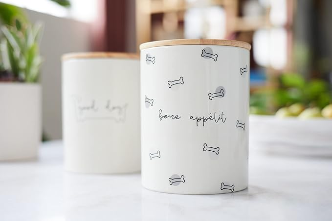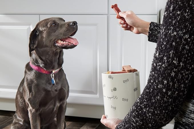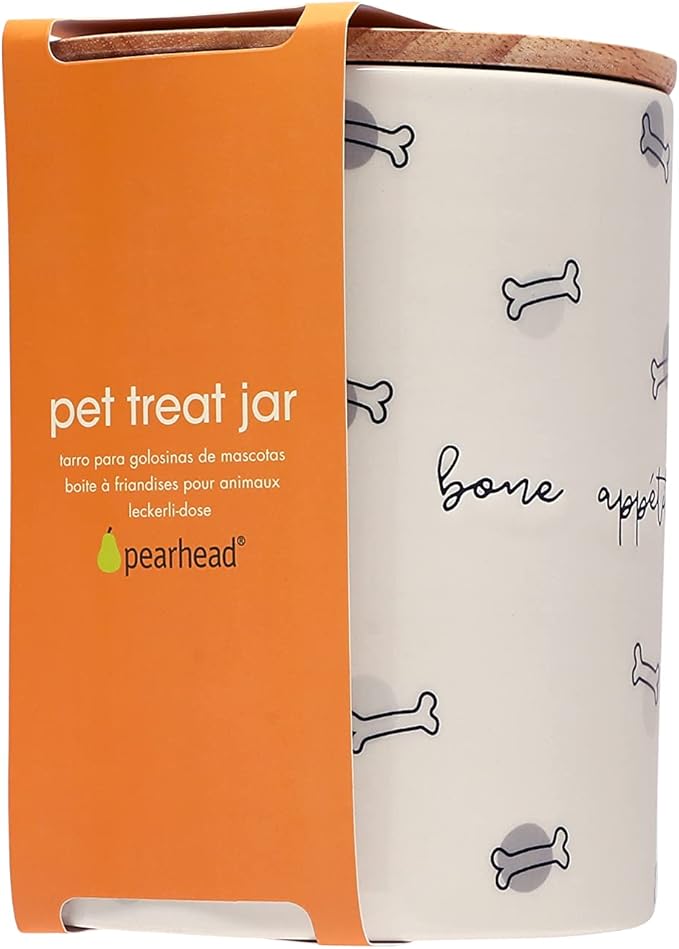 • Ceramic Dog Treat Jar: Store your furry friends favorite treats in style with this adorable, bone appetite treat jar by Pearhead. Big and tall enough for small dog treats or large dog treats, this dog treat container is the perfect choice for dogs of all sizes