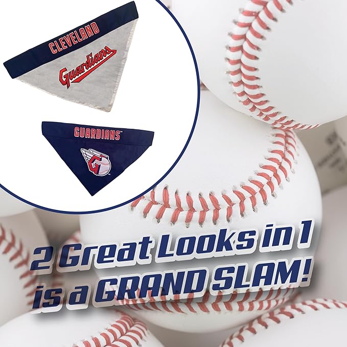 Pets First MLB Cleveland Guardians Reversible Bandana Small/Medium for Dogs & Cats. 2 Sided Sports Bandana, with a Premium Embroidery Team Logo. - 2 Sizes & All MLB Teams Available (CLG-3217-S-M)