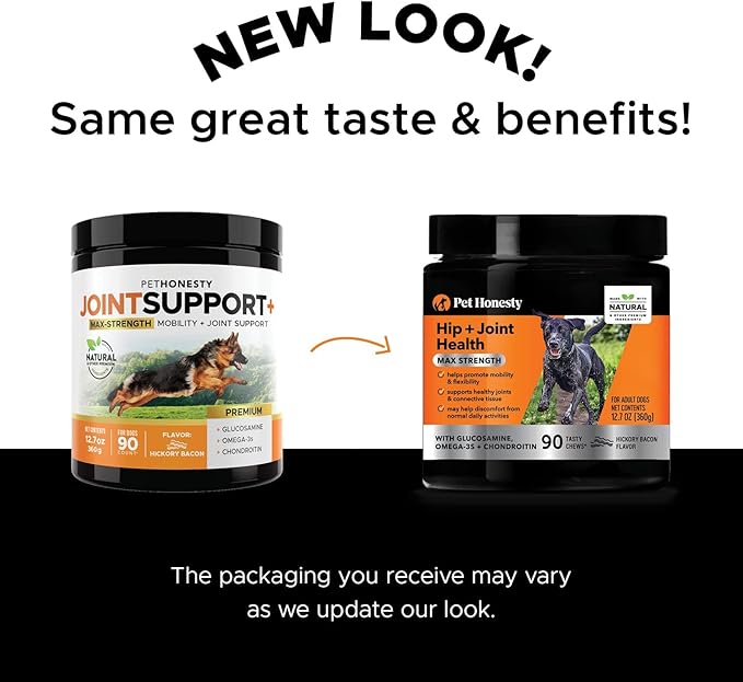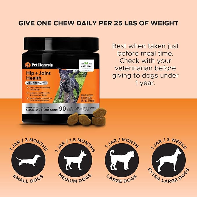 Pet Honesty Hip & Joint Health Max Strength - Natural Joint Supplement for Dogs Chews - Glucosamine, Omega-3s, Chondroitin, Green Lipped Mussel - Help Improve Mobility, May Reduce Discomfort (90 ct)