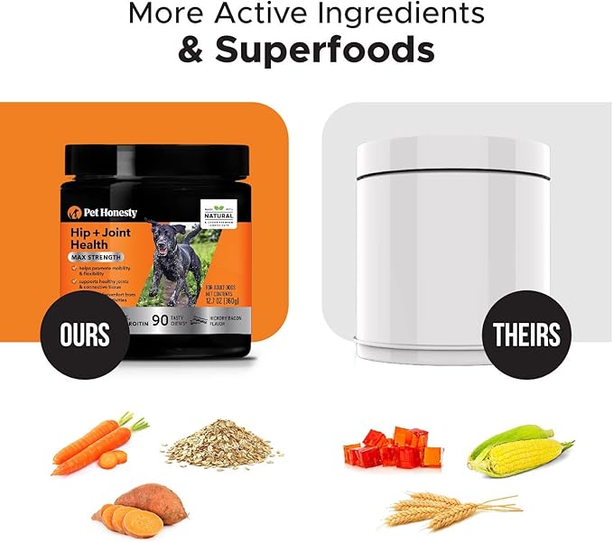 • VET-RECOMMENDED FOR MAXIMUM JOINT FUNCTION SUPPORT: In a study conducted among pet parents of dogs with hip & joint issues, 78% noticed an improvement in their dog’s mobility after 2 weeks. Additionally, 84% noticed an improvement in their dog’s stiffness after 4 weeks!* *Based on in-home study conducted by Pet Honesty in 2022.
