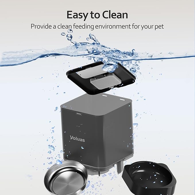 • User Friendly Operation: Intuitive LCD screen makes setup and programming a breeze. Removable cleanable parts foster a healthy environment for your pet’s food. Included Desiccant bag helps maintain the freshness of the cat food, keeping it crunchy for biting.