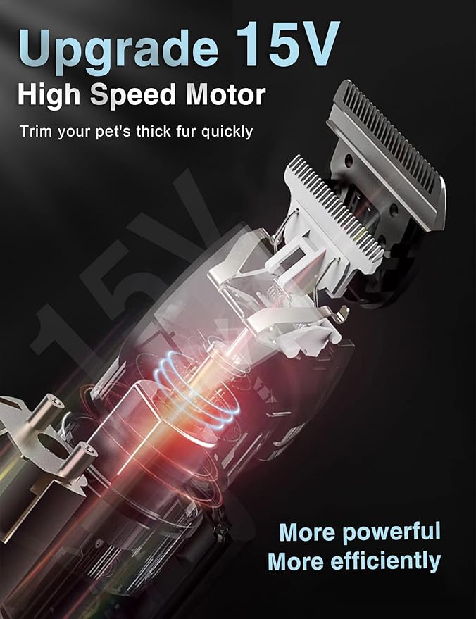 • UPGRADED 15V POWERFUL MOTOR for professional hair clipping and trimming.Serimer dog grooming clippers are designed for thick coats,can trim your pet's thick fur quickly, will not clog the blade or pull their hair, bring you a more effective trimming experience.