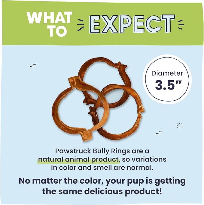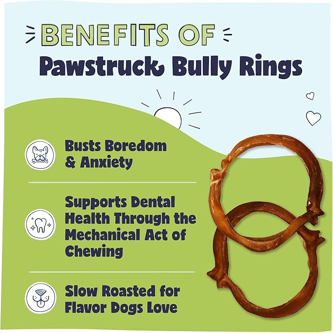 • The Paw-fect Gift: Bully Rings are a unique and fun alternative to regular straight sticks. Pawstruck Bully Rings are approximately 3.5 inches in diameter, making them ideal for small, middle, and even large dogs. Show your pets some love and pupreciation with Pawstruck Bully Rings today!