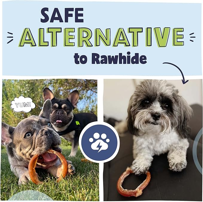 • Premium Long Lasting Dog Chews: Our bully rings are sustainably sourced from free-range, grass-fed cattle baked to perfection, making them one of the healthiest rawhide alternatives. Made with no artificial substances, hormones, or chemicals. These full-sized, all-natural beef pizzle dog treats are free of any additives or preservatives that your dog will truly love.