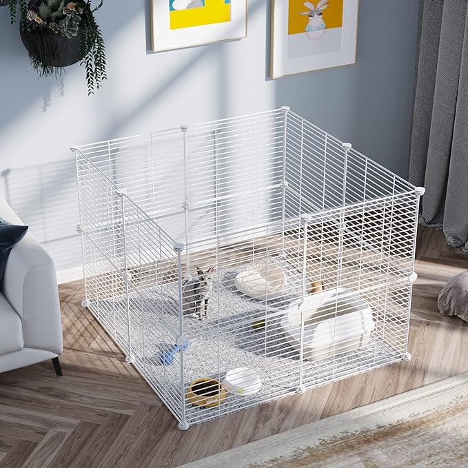 C&AHOME Pet Playpen, Small Animals Supplies, 16 Panels Exercise Playpens Cage, C Grids Portable Yard Fence Indoor, Ideal for Guinea Pigs, Pet Products, DIY Metal Yard Fence, 12" × 15" White UPPM3416W