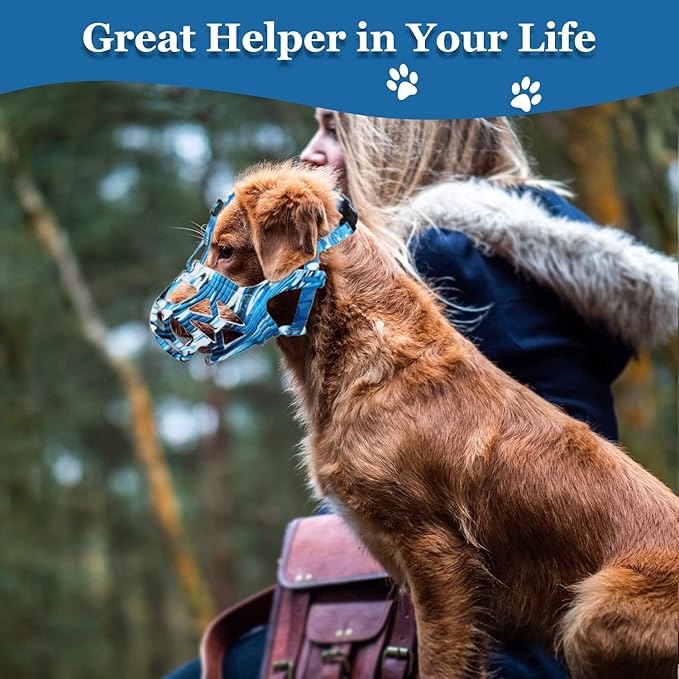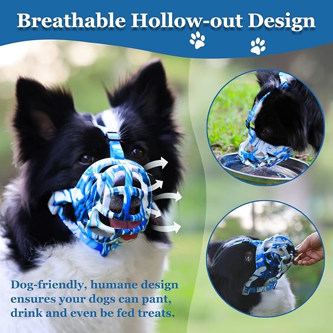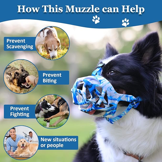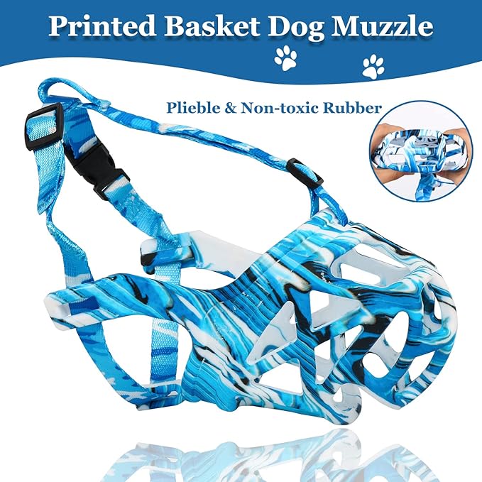 Dog Muzzle, Printed Basket Muzzle for Small Medium Large Dogs Dachshund, Beagle, German Shepherd, Breathable Pet Muzzles to Prevent Biting Chewing Scavenging, Allows Panting and Drinking