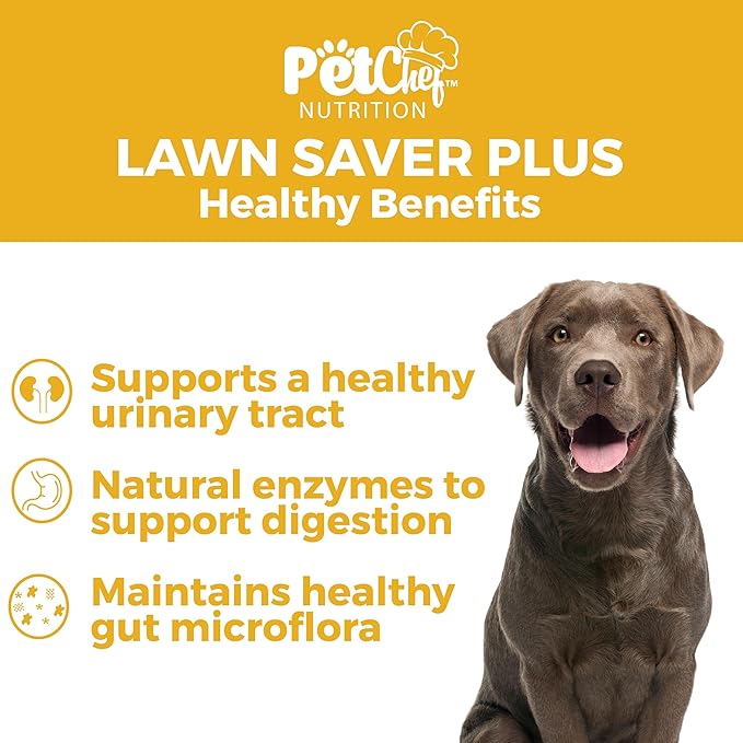 Pet Chef Lawn Saver Plus! - Dog Urine Neutralizer for Lawn, Grass Saver Soft Chews, Green Grass Dog Chews, Prevents Lawn Burn from Dog Urine, Repair & Prevent Damage to Green Plants from Dog Pee.