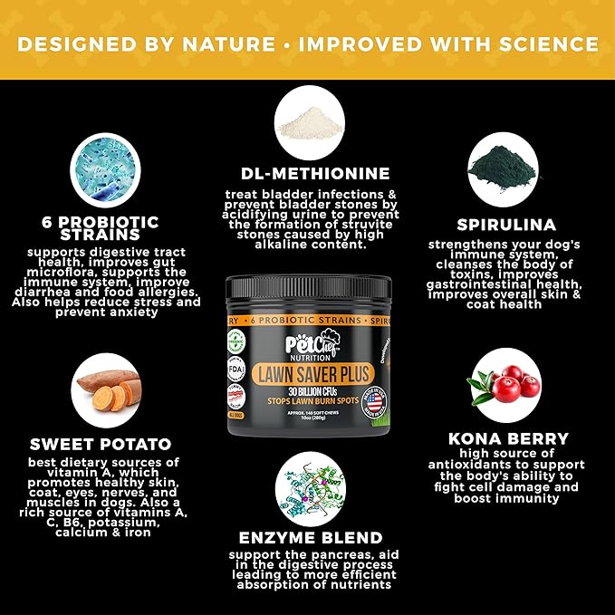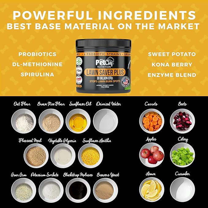 • Safe and Natural - Pet Chef Lawn Saver PLUS! is a natural solution to protect your lawn from dog urine spots. It's safe for your pets and for your lawn, making it a reliable choice for pet owners. No chemical dog treats that are natural and organic.