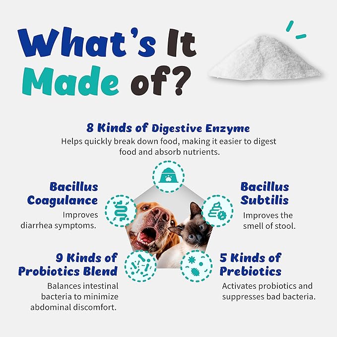 Probiotics Powder Pancreatic Health, Intensive Gut Health, Diarrhea and Constipation, Allergies for Dogs and Cats (120g)