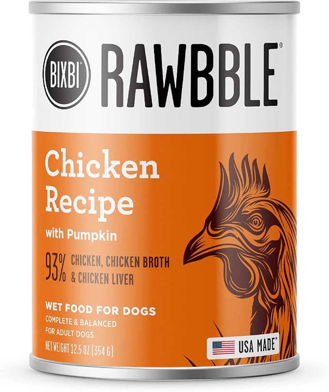 BIXBI Rawbble Grain-Free Canned Wet Dog Food, Chicken Recipe, 12.5 oz. Cans (Pack of 12)