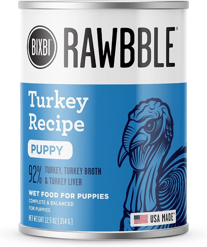 BIXBI Rawbble Grain-Free Canned Wet Dog Food for Puppies, Turkey Recipe, 12.5 oz. Cans (Pack of 12)