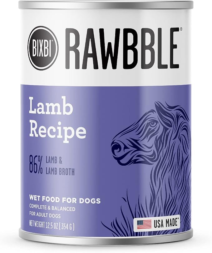BIXBI Rawbble Grain-Free Canned Wet Dog Food, Lamb Recipe, 12.5 oz. Cans (Pack of 12)