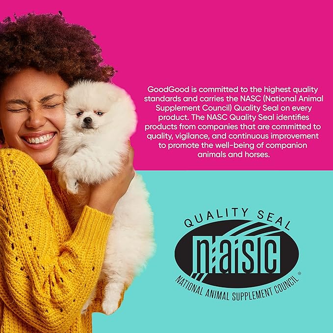 • NASC CERTIFIED: GoodGood dog chews carry the National Animal Supplement Council Quality Seal that identifies company products that promote the well-being of your pet so you can feel good about doing good