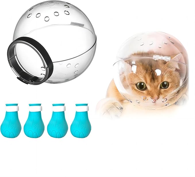 Cat Muzzle for Grooming,Bubble Muzzle and Boots for Nail Trimming,Cat Grooming Mask with Anti Bite,Cat Astronaut Helmet,Cat Breathable Muzzle and Silicone Paw Covers