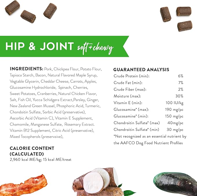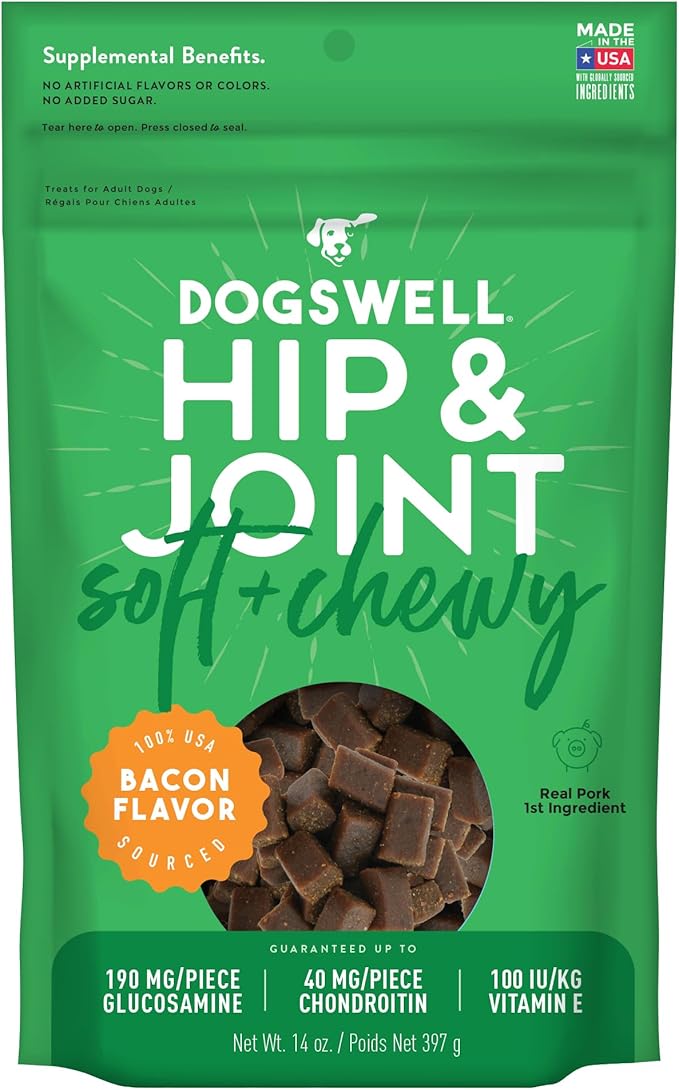 DOGSWELL Hip & Joint Soft & Chewy Dog Treats, Bacon, 14 oz. Pouch