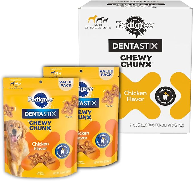 Pedigree DentaStix Chewy Chunx Dental Treats, Large Dog, Multiple Sizes 13.5 Ounce (Pack of 2)