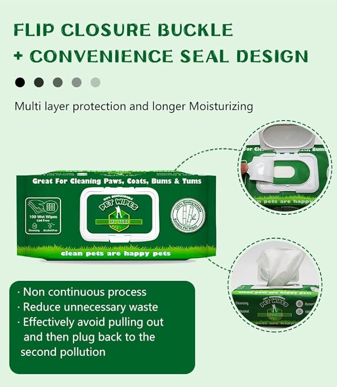 • Enhanced Moisture Lock: Our dog wipes are engineered to lock in moisture, ensuring they stay wetter for longer - This means you can clean more effectively with fewer wipes, making each pack of 100 wipes last even longer, saving you time and money.