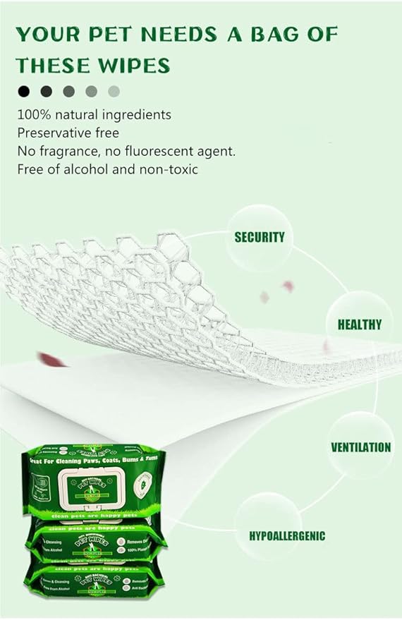 • Multi-Purpose Cleaning: With 100 pieces in each pack, these pet wipes are perfect for cleaning paws, faces, ears, butt and even your furry friend's rear end - These pet wipes aren't just for dogs and cats; they're also perfect for other small pets - From kittens and puppies to rabbits and guinea pigs, they cater to various furry companions.
