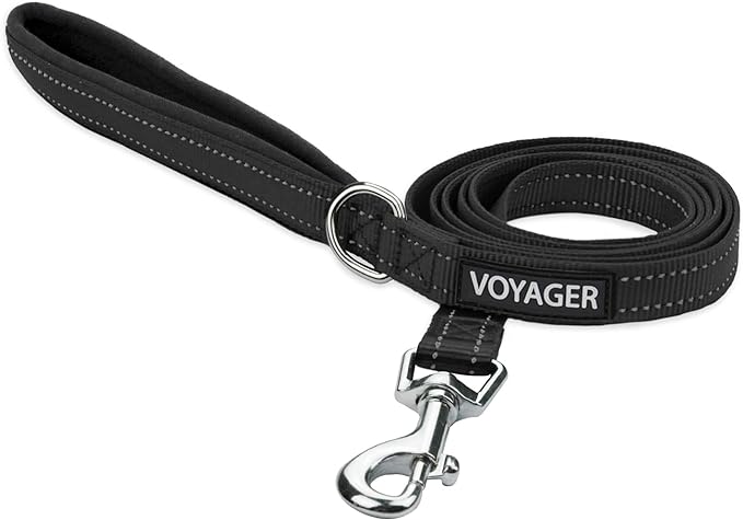 Voyager Reflective Dog Leash with Neoprene Handle, 5ft Long, Supports Small, Medium, and Large Breed Puppies, Cute and Heavy Duty for Walking, Running, and Training - Black (Leash), M