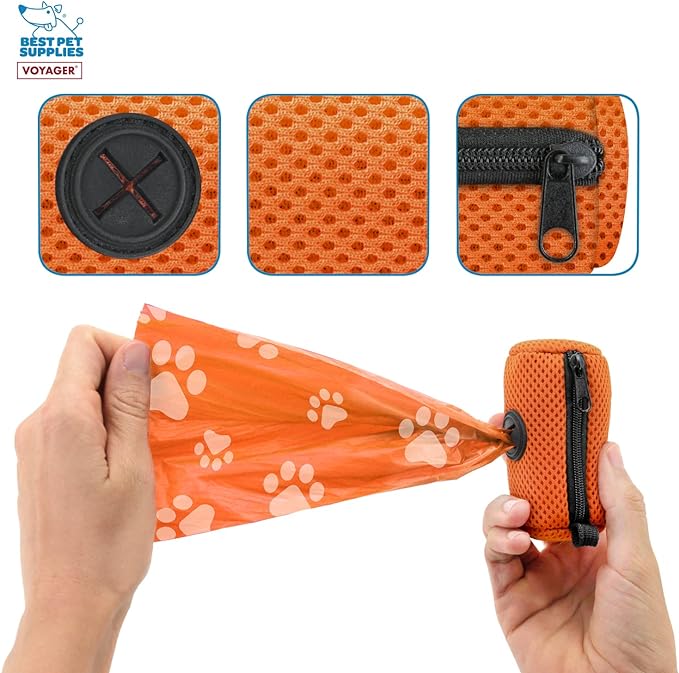 Best Pet Supplies 2-Pack Dog Poop Bag Holder Leash Attachment, Color, Reusable Mesh Dispenser Pouch for Travel, Walking, Park, and Outdoor Use, Soft and Durable with Clip-On - Mesh Orange