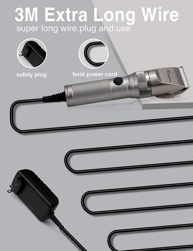 • 12V High -Speed Strong Power Motor: Hansprou professional dog grooming clippers have strong power, no hair sticking, plug and use, no need to charge, to provide strong and stable power, you can use it to fast trim pet's hair and cut through smoothly.