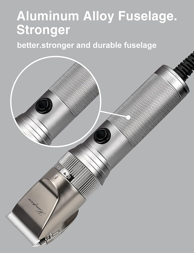 • Aluminum Alloy Fuselage + 1 Year Warranty: Aluminum alloy fuselage feels stronger, pet shaver clippers more durable,We believe you will fall in love with this professional hair grooming clippers
