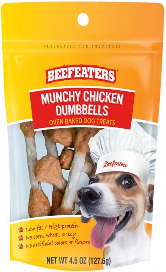 Beefeaters Dog Treats - Munchy Chicken Dumbbells 4.5oz, Case of 6 | Dog Food Savory Real Chicken & Beef Hide Treats | High Protein & Low Fat | Training Treats for All Dog Sizes