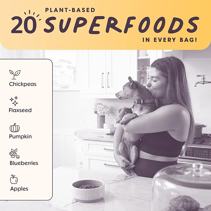 • NATURAL INGREDIENTS: Made with 20 plant-based superfoods in every bag including flaxseed, pumpkin, apples, carrots, and cranberries. A delicious flavor enjoyed by all dogs, even picky eaters.