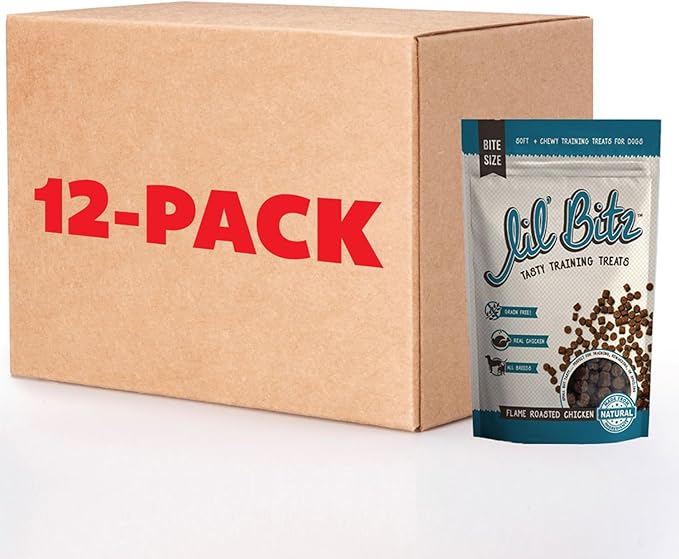 Lil' Bitz Flame Roasted Chicken Training Treats for All Dog Breeds - Low Calories, Grain Free, Natural Ingredients, NASC Compliance - Perfect Reward for Dogs of Every Size (12 Pack)